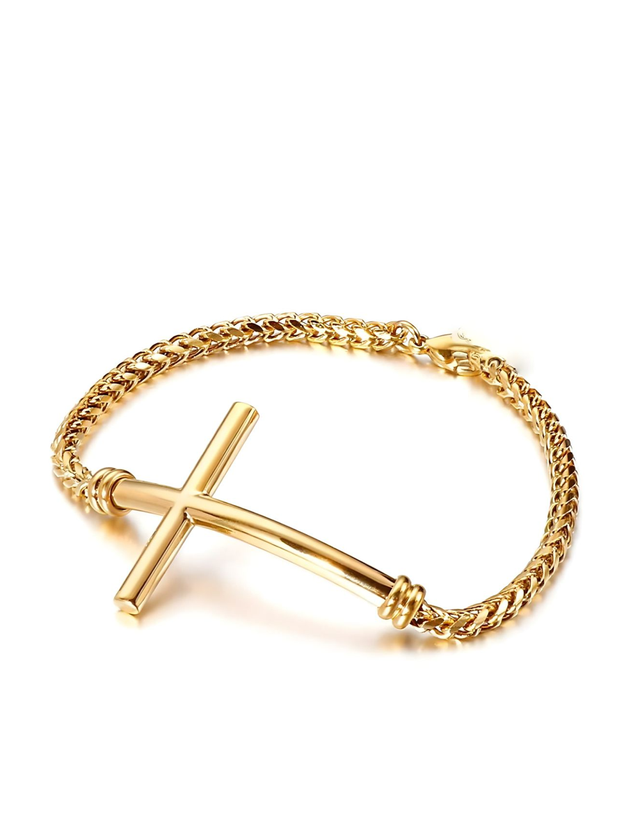 This Cuban Cross Bracelet features a sleek design, crafted with a gold finish that adds a touch of elegance to any outfit. Made with high-quality materials, this bracelet is durable and long-lasting. Perfect for everyday wear, it's a must-have addition to any jewelry collection.
