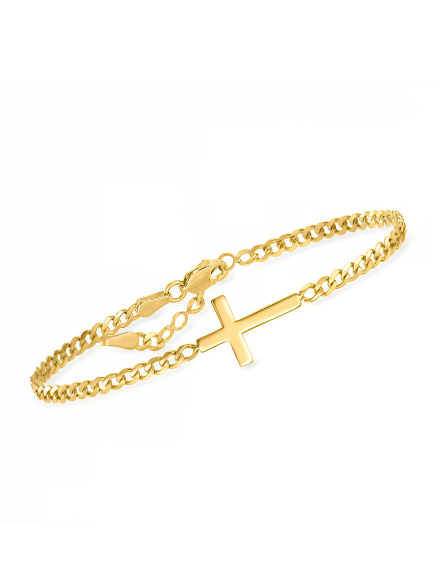 Cuban Curb Cross Bracelet (Gold)